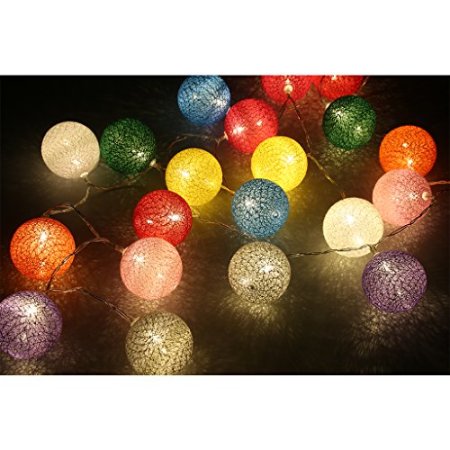 String Light Cotton Ball Battery Festive Lights, 20 LED lights, 1 Light Mode, Powered with 3AA Batteries for Indoor Celebration, Christmas Decoration Use (Multicolor) ...