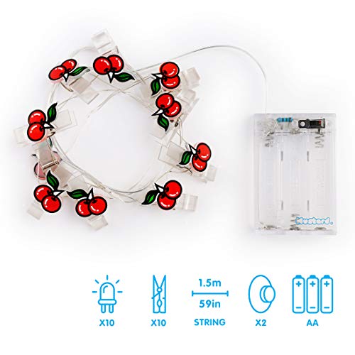 10 clip a forma di ciliegia su un filo da 1,5 m con due ventose in plastica