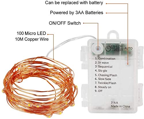 【100LED Luci Decorative】Le luci da stringa 10M 100led sono realizzate in filo di rame di alta qualità. Alimentato da 3AA batterie (non incluse). Buon ideale per decorare interni ed esterni. Aggiungi una calda atmosfera alla tua festa, Natale, vacanze, camera da letto. Sei libero di scegliere se usarli singolarmente o in combinazione e possono soddisfare completamente le tue esigenze di illuminazione decorativa.