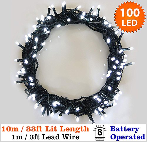Luci stringa 100 Bianco brillante Interno LED Luci di stringa 10m/33ft lunghezza illuminata-Batteria,8 funzioni-ideale per albero di Natale, festive, matrimonio/festa di compleanno decorazioni