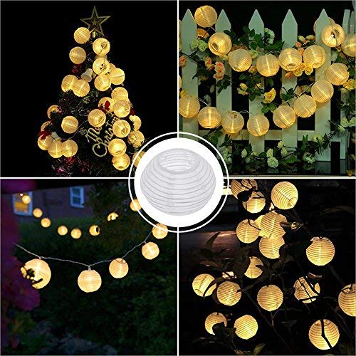 [30 LED Lampada Bianca Calda] La lunghezza totale del cavo è di 5,5 metri con 30 luci a LED e 30 tulipani in nylon, calde lanterne bianche. Sono magnifici anche durante il giorno