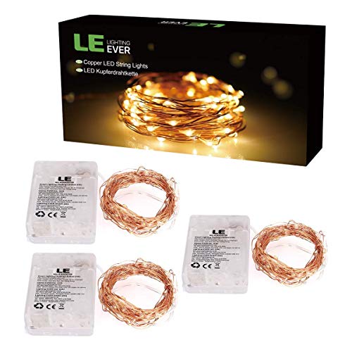 LE Luci Stringa Luminosa 6m a Batterie, 60 LED Bianco Caldo 2700K, Catena Filo in Rame Impermeabile IP65, Stringhe Luminose per Decorazioni Natalizie Esterno e Interno, Confezione da 3 Pezzi