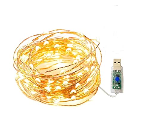 Stringa serie luci di Natale catena con Micro Led Bianco Caldo filo in rame presa USB con 8 differenti giochi di luce (20 Led - 2.2 Metri)