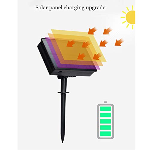 Facile da installare: il pannello solare con picchetto a terra, una corda lunga 72 piedi è perfetto per avvolgere un albero o ovunque desideri illuminare giardini, patio, prato, portico, cancello, cortile, ecc. Il cavo tra la prima luce LED e il il pannello solare (cavo di piombo) è lungo circa 6 piedi, quindi puoi posizionare il pannello in un luogo adatto.