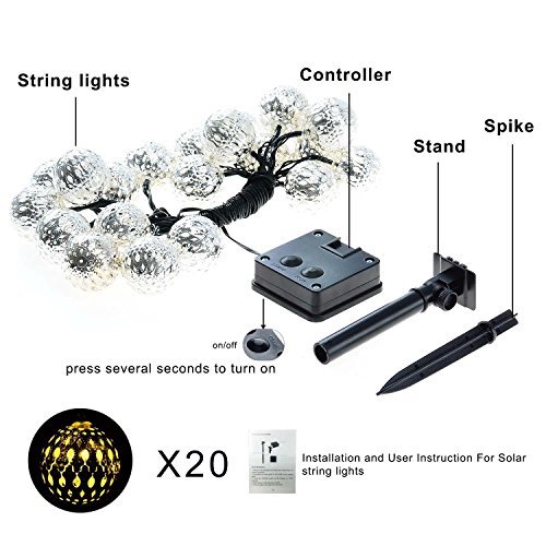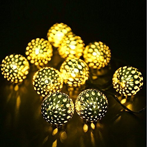 Luci a Stringa Solari,KINGCOO 15.7FT/4.8M 20LED Geometrico Metallo Ambiance Ornamento Decorativo Bianco Caldo Illuminazione per Casa Interno Giardino Prato Festa Natale Matrimoni (Marocchino Palla)