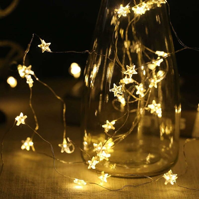 Descrizione del prodotto materiale: plastica Misura: 3 metri (30 luci) Tensione di ingresso: 3 (V) Colore: bianco caldo Quantità: 1 pezzo Contenuto della confezione: 1 pezzo * String Lights 1.É LED String Lights Stars: le stelle LED 3m30 sono perfette come complemento di luce per ogni progetto di decorazione. Con un angolo di visione costante di 350 gradi, brillano in tutte le direzioni.Puoi scegliere tra diverse modalità di illuminazione. 2. Facile da usare: con il puoi regolare la luminosità (combinazione, in onde, consecutive, slogs lo, chase/flash, slow fade, sfarfallio/flash e luce fissa). 3. Risparmio energetico e sicurezza: sorgente luminosa a LED bianca calda, le luci delle corde s in stella sono a basso consumo di calore e potenza, filo di platino solido isolato. È lungo 3 m (comprese 30 stelle), può essere alimentato dalla luce direttamente tramite l'interfaccia USB. 4. Facile da dar forma e a forma: può essere anche una leggera ghirlanda per bottiglie. Ed è robusto