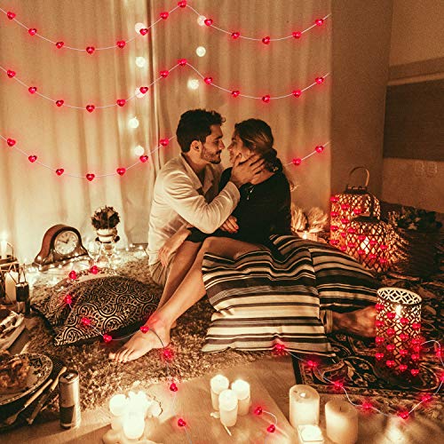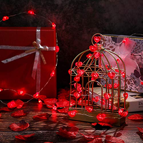 BBTO 52 LED 13ft Luci a Stringa di San Valentine Decorazione di San Valentine Luci a Forma di Cuore Rosso a Batteria con Filo di Rame Impermeabile con Timer Remoto per Interni ed Esterni a Casa