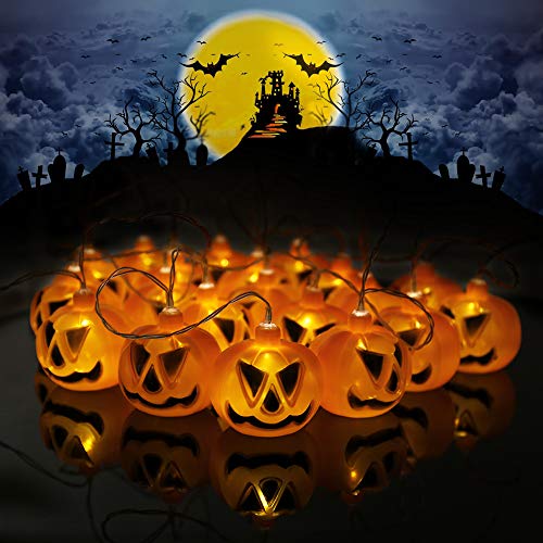 atteria Alimentata: Alimentazione a 3 Batteria AA (non incluse), le lunghe luci a stringa di zucca lunghe 2,2m rendono flessibile l'appendere la stringa di luci e utilizzarla in qualsiasi occasione, senza essere limitata dalla spina locale.