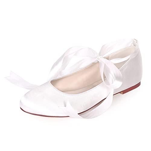 Stringate Piatte Ballerine Tacco Basso Scarpe da Sposa Argento Scarpe da Sposa in Raso da Donna Classiche Scarpe da Damigella d'Onore,Bianca,44 EU
