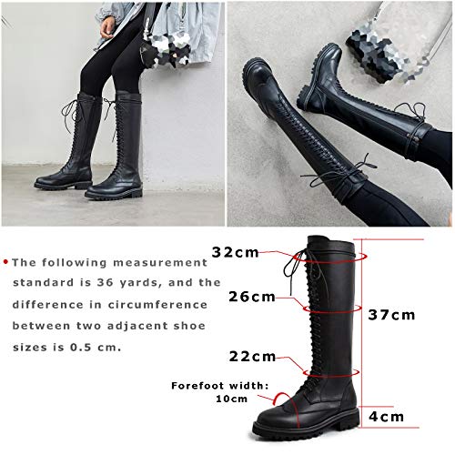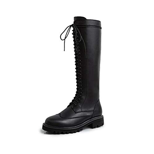 Stringati in Stivaletti da Donna di Pelle Tacco Basso Retro Stivali Alti sopra Biker Punk Militare Combat A metà Polpaccio Stivali,Nero,39 EU