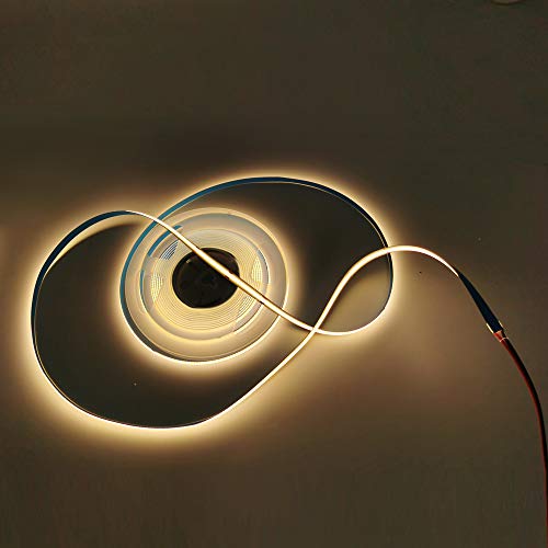 【Applicazione:】 striscia luminosa LED COB 12 V/24 V, luce liscia e morbida, evita l'aberrazione cromatica, la degradazione della luce e la luce morta. Alto indice di resa cromatica, grandangolo di 180°, kit super luminoso, 384 LED /M per camera da letto, sala da pranzo, cucina, retroilluminazione, giardino, illuminazione per feste, risparmio energetico e sicuro da usare.