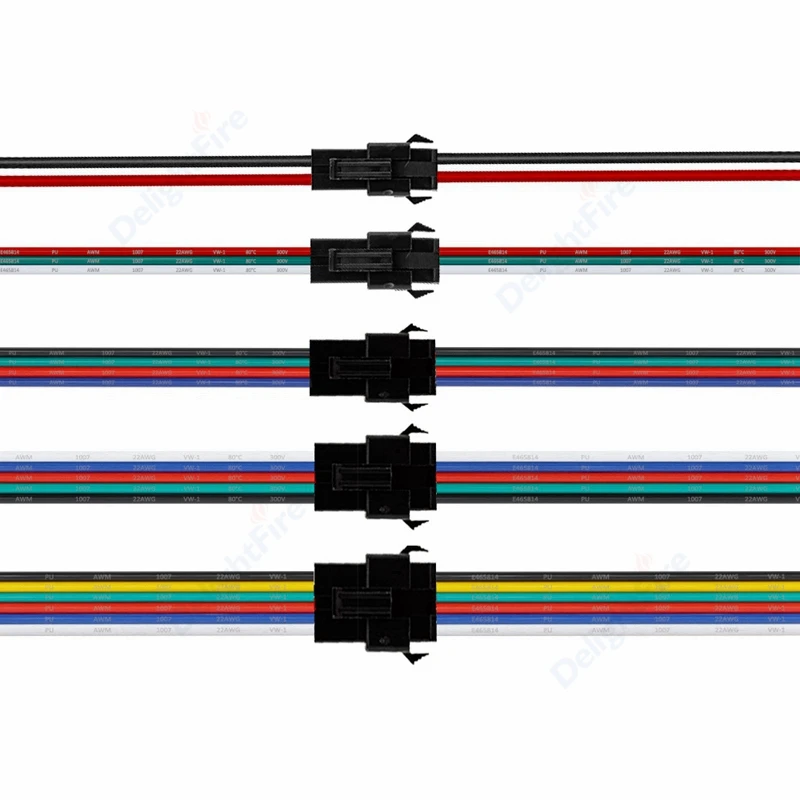 LED Strip 2pin SM JST LED Connector Cable 22/20AWG 3/4/5/6 Pin Wire Connectors For RGB WS2812B Pixel Light Module Solar Pannel