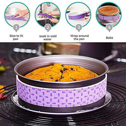 Facile da usare: immergere le strisce di torta da forno in acqua fredda per almeno 5 minuti e avvolgerle intorno alla teglia prima di infornare. L'umidità nelle strisce mantiene i bordi della padella più freschi per torte sempre perfettamente livellate e deliziosamente umide, le nostre cinghie per torta causeranno meno sprechi di torta, meno lavoro in cucina e risultati migliori.