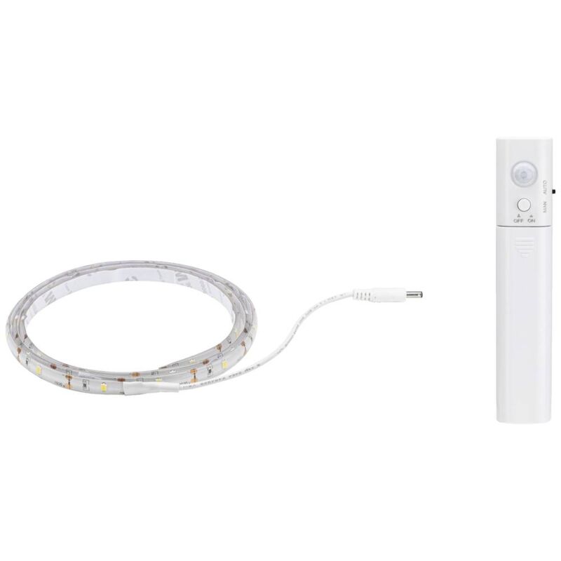 Dettagli tecnici Caratteristiche striscia LED funzionamento a batteria Colore Bianco Colore luce Bianco caldo Dimensione del prodotto, larghezza 800 mm Dimensione del prodotto, lunghezza 1 m Dimensioni (L x L x A) 1 m x 800 mm x 3 mm Dimensioni prodotto Altezza 3 mm Flusso luminoso per fonte di luce (lumen) 156 lm Materiale Plastica Potenza 2 W Tensione di funzionamento 6 V Tipo di protezione IP20 Tipo prodotto Kit strisce LED Striscia LED alimentata a batteria 1m 2W 156lm/m 3000K Anche se non c'è una presa di corrente nelle vicinanze, il LED Mobil Strip bianco caldo porta la luce decorativa ad effetto nell'angolo più scuro. Grazie al piccolo vano batterie, dotato di quattro batterie AAA, la striscia di 1 metro di lunghezza è utilizzabile in modo flessibile. Grazie al retro autoadesivo, la striscia può essere fissata in modo rapido e semplice a pareti, mobili o oggetti mobili. Il rilevatore di movimento integrato accende automaticamente la luce non appena qualcuno si avvicina a 4