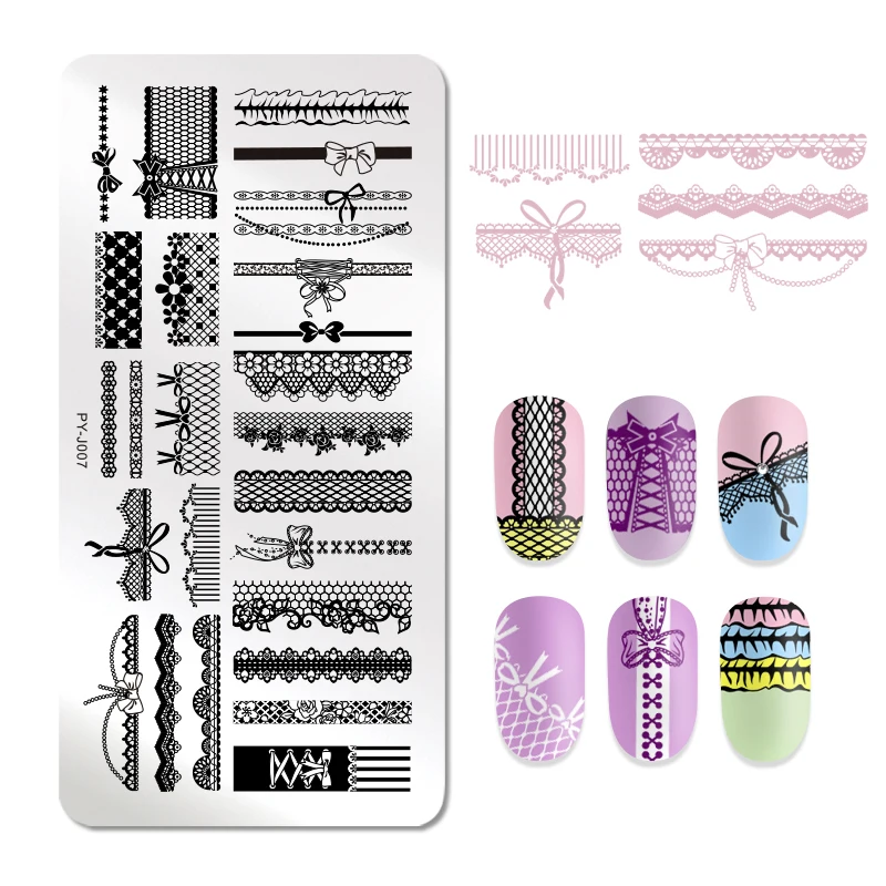 PICT YOU Nail Striped Lace Flower Rectangle Stamping Plates Stainless Steel Nail Art Design Stamp 12cm * 6cm Stamping Template