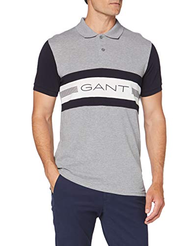 GANT D1. 13 STRIPES SS PIQUE RUGGER, Polo Uomo, Grigio ( GREY MELANGE ), S