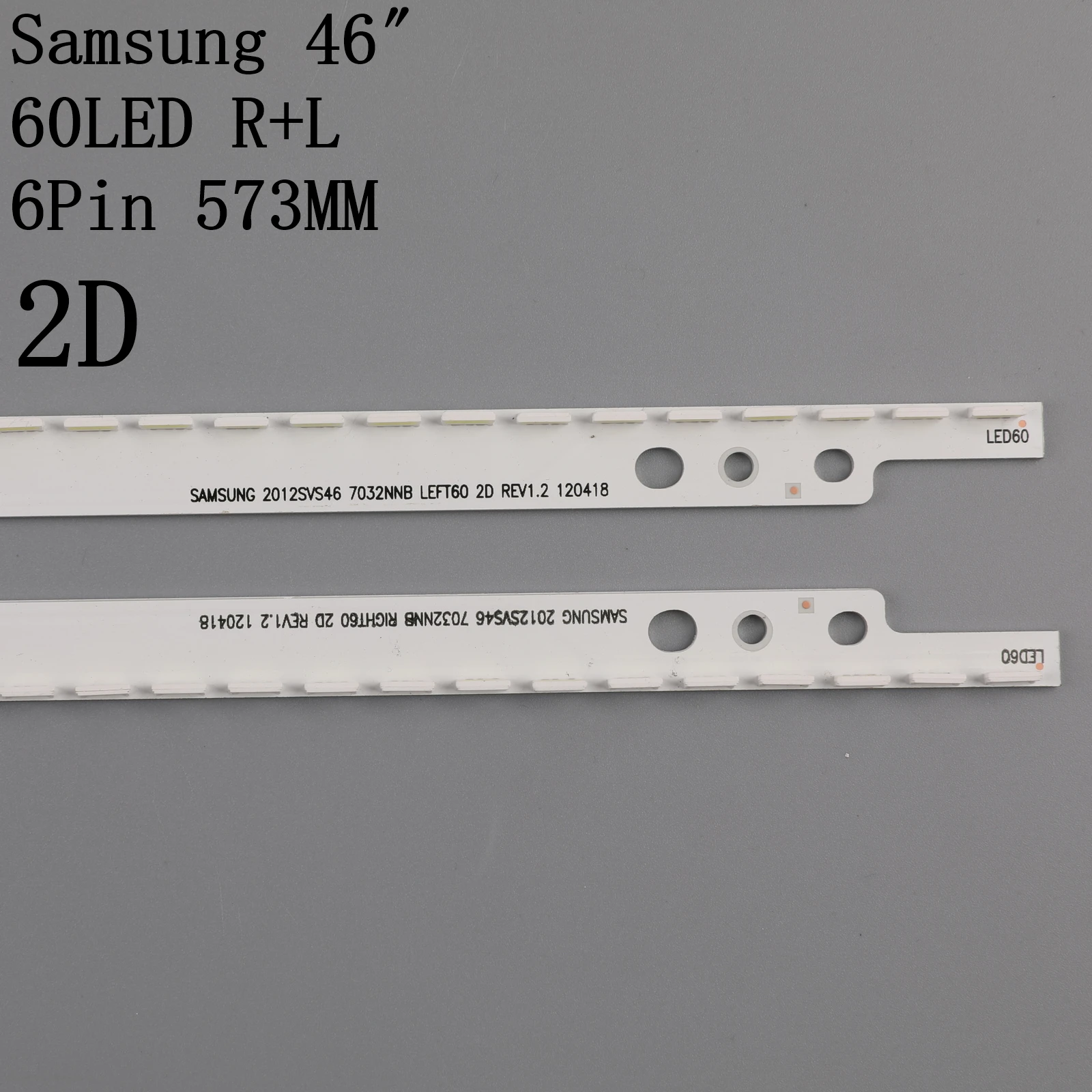 2pcs x 46 inch Edge LED Strips for Samsung LTJ460HN06 UA46ES5500R UE46ES5507K TV 2012SVS46 7032NNB 2D 60-LEDs 573mm