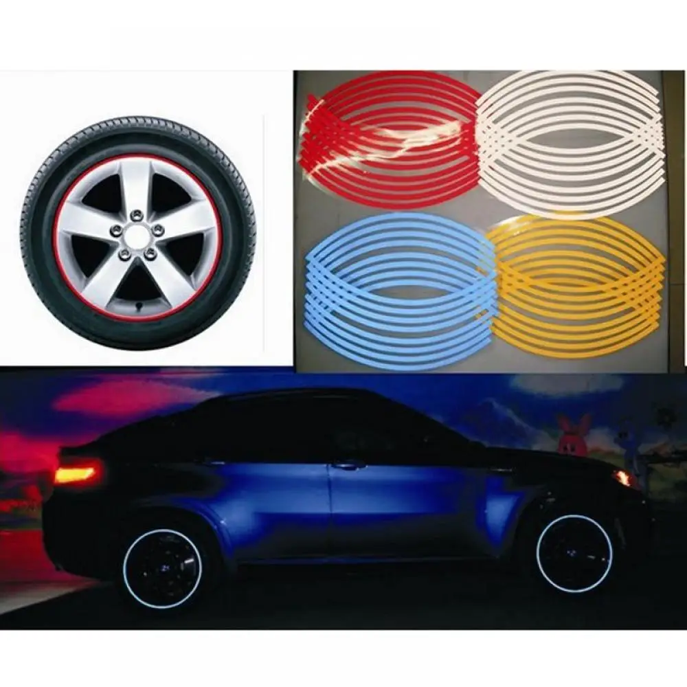 16 Pcs Strips Wheel Stickers And Decals Reflective Rim Tape Bike Motorcycle Car Tape 7 Colors Car Styling