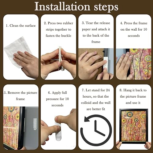 【Facili Usare e rimuovere】Pulisci prima il muro che deve essere incollato, quindi strappa un lato della pellicola protettiva, applicarlo sul retro del tuo oggetto e fissare l'altro lato sulla parete. Nessun attrezzo necessario! Ideali per cornici e decorazioni.