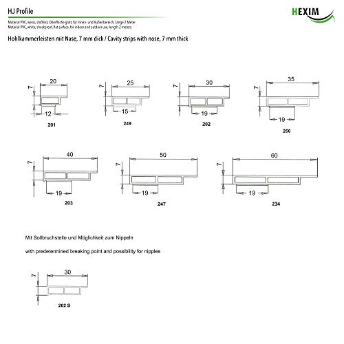 HEXIM Battiscopa a camera cava HJ204, dimensioni per battiscopa: 2000 ± 10 x 60 mm, altezza profilo: 7 mm, spessore: 2 mm, densità circa 1620 kg/m³