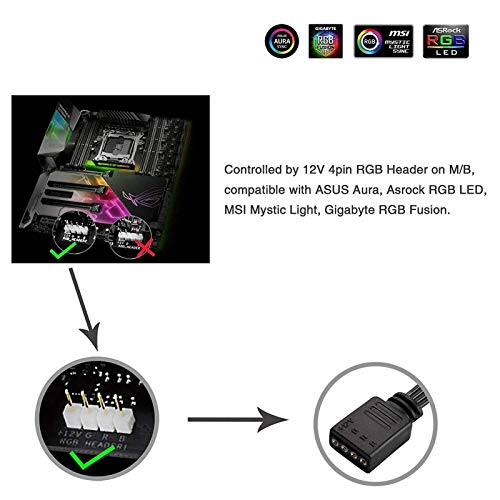 Controllo della sincronizzazione RGB: progettato per scheda madre con testina LED RGB a 4 pin (+ 12V, G, R, B), compatibile con ASUS Aura, Asrock RGB LED, Gigabyte RGB Fusion, MSI Mystery Light, ecc. (Se si desidera 5V 3) -Pin striscia LED indirizzabile, cerca B07MDY914L)