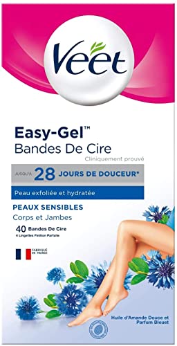 Veet - Strisce di cera Easy-Gelwax Strisce di cera per pelli sensibili, Confezione da 40 strisce