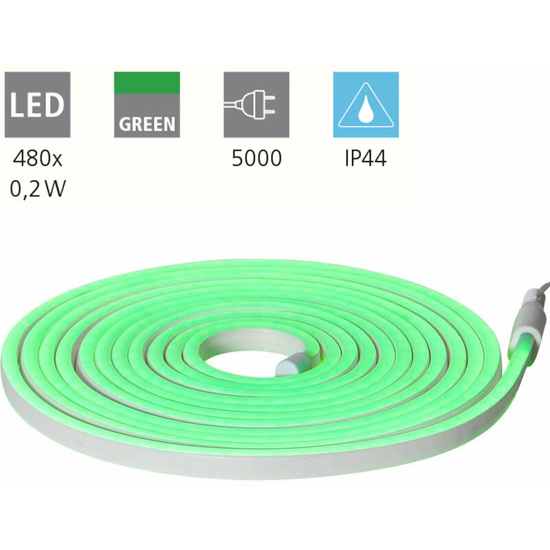 Strisce a LED Flatneonled L: 500 cm H: 0,6 cm con cavo+connettore IP44 Dimensioni in mm: Lunghezza: 5000, larghezza: 15, altezza: 6, Peso in kg: 0.777 tipo medio luminato/versione: LED Lampade contengono: Sì Prestazioni massime in watt: 480x0.2w Classe di protezione: IP44 Dimmbar: No: Sì Materiale vetro/dispensa: Plastica Colore vetro/ombrello: verde Informazioni aggiuntive: con cavo+spina