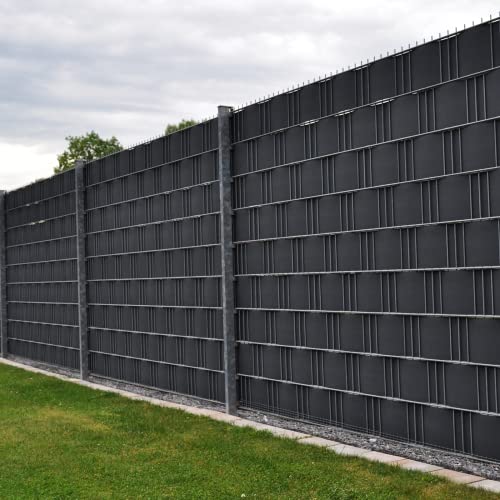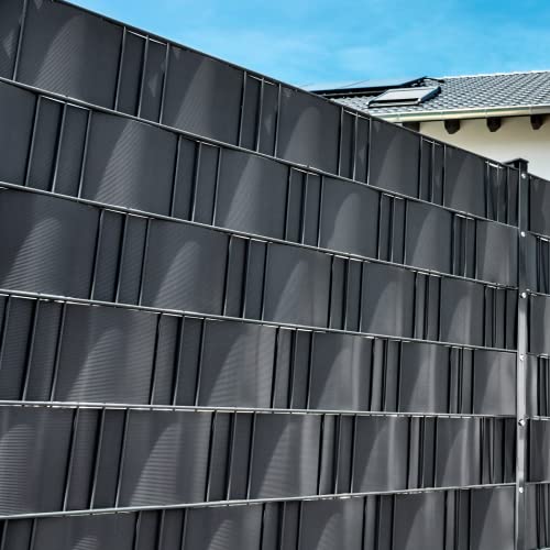 Strisce frangivista in PVC per recinto, frangivista per stuoie a doppia asta, 50 x 19 cm, con 35 clip di fissaggio, per recinzione, opaca, protezione dal vento, anti-UV, 450 g/m²,Grigio Scuro
