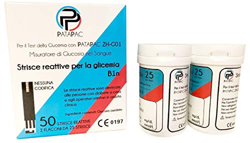 Strisce Glicemia confezione da 50 strisce reattive per misurazione zucchero nel sangue da usare con Glucometro misuratore diabete - PataPac dispositivo