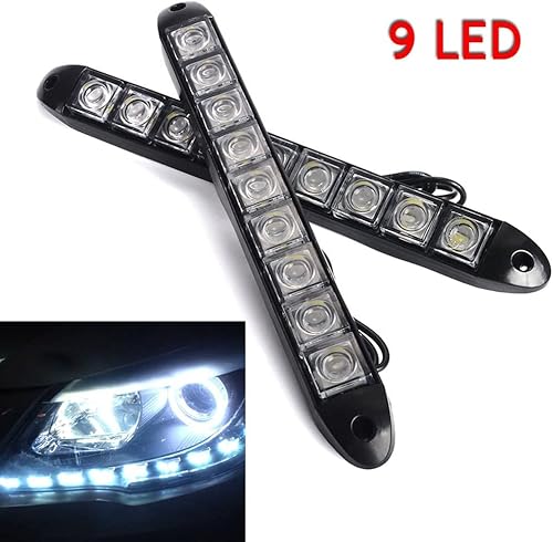 2 strisce di lampadine LED per auto, luci di marcia diurna e fendinebbia, 12 V, 9 LED, luce bianca