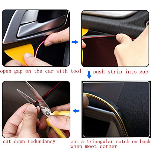 Strisce modanatura interni auto con strumenti di installazione- 16.4ft Gap Filler Flessibile decorativo interno bordo modanatura Strip Line Universal Gap guarnito fai da te (Fibra di carbonio nera)