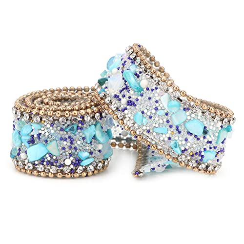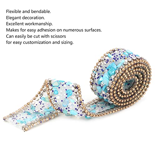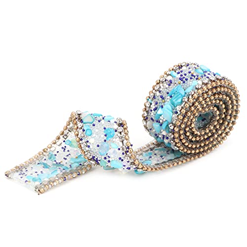 Strisce di Strass Diamantati Nastri Bling Roll Banding Belt Wrap Diamond Mesh Wrap Roll Strass di Cristallo per Decorazioni per Feste di Torte Nuziali(Catena di perline oro pietra blu)