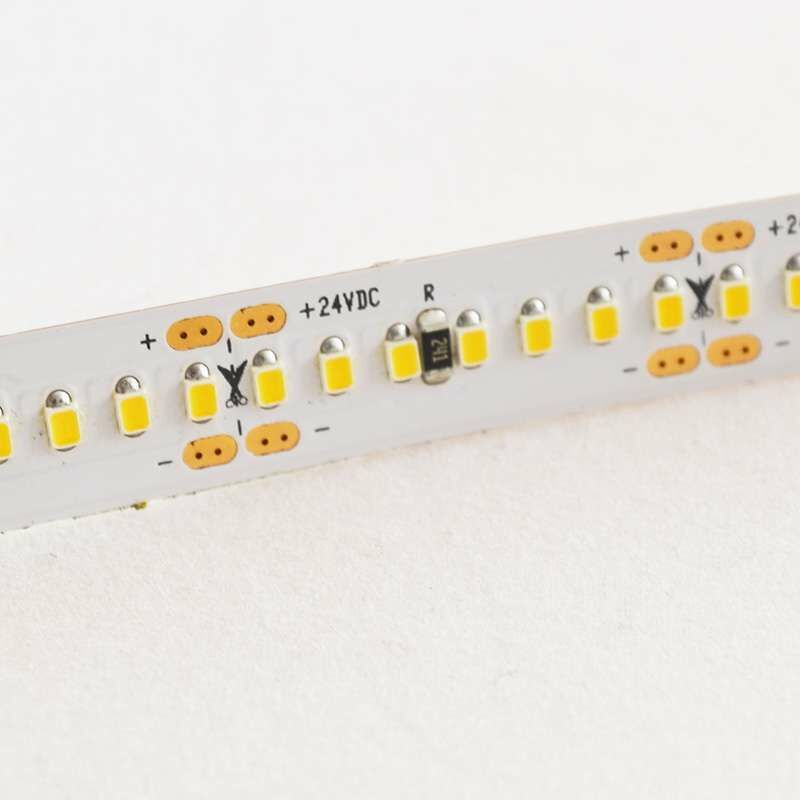 Nastro LED ad alta potenza: 17W/m, 1600 lumen per metro 240 LED 2216 per metro, IP20. Luce bianca calda 3000K. Lunghezza massima consigliata prima della perdita di luminosità = 8m. Larghezza 10mm, CRI ✱ 90 - nastro di fascia alta. Lunghezza 1m. Consegnabile in lunghezza personalizzata: esempio 7 qty di 1m = 1 nastro di 7m. Dim to Warm: quando l'intensità del nastro diminuisce la temperatura del colore (3000-1800K) 3000K 17W/m 120° 1600lm/m 50000h Dim in bianco caldo: il più basso l'intensità del nastro e il più caldo la luce diventa 3000K a piena potenza a 1800K in bassa luminosità. Fino a 1,5 m lED alimentazione GPV-35-24, da 1,5 a 3m lED alimentazione GPV-60-24, da 3 a 5m lED alimentazione GPV-100-24, 5-8 lED alimentazione GPV-150-24. Per aggiungere uno variatore FUT-035 e telecomando FUT-006. Principali caratteristiche tecniche del nastro: 240 LED per metro: 1200 LED SMD Con 240 LED al metro nel 2216 difficilmente si possono vedere i punti luce anche senza diffusore Perfetto per