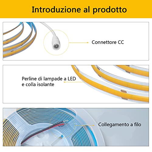 【Set di strisce LED COB più luminose】Striscia LED COB 5M 3000k con alimentatore e controller.2560 LED/M (512 LED al metro) forniscono una luce bianca calda più luminosa e uniforme rispetto ad altre strisce comuni.Il design di COB rende la luce continua,senza preoccuparsi dell'aspetto dei punti.La luce soffusa si prende cura dei tuoi occhi