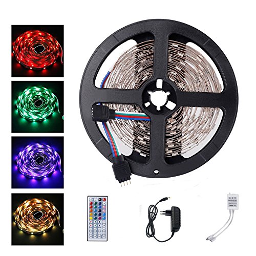 Striscia Led, CHINS l'intera apparecchiatura Striscia Led 5050 RGB di 5 metri + 44 tasti del telecomando IR + 12V UE caricabatteria (incassato con IC e fusibile) / Alimentazione elettrica