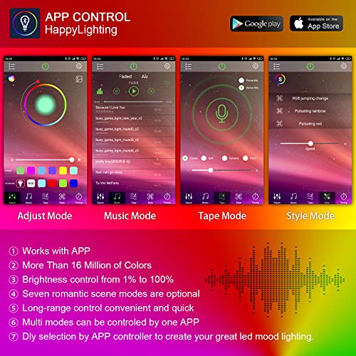 【Funzionamento facile da controller, telecomando e APP】 Questo nastro LED RGB può essere controllato tramite smartphone tramite Bluetooth, nonché un telecomando RF a 20 tasti, poiché il ricevitore incluso può essere utilizzato come ricevitore Bluetooth o ricevitore IR, La distanza per il controllo raggiunge i 10 metri. Controllo semplice salvare il vostro tempo.