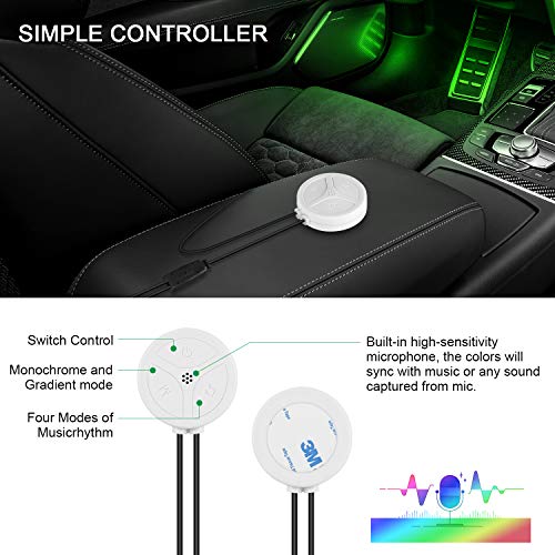 【Sincronizzazione multi-colori e musica】 Il ci sono più di 16 milioni di colori sulla APP, è possibile creare il proprio colore unico per migliorare la vostra auto. Microfono incorporato ad alta sensibilità, le luci danzano automaticamente al ritmo della musica. Offri un'esperienza di guida fresca e dinamica.