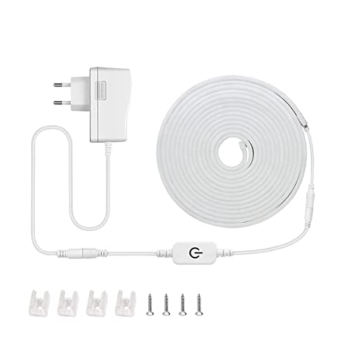 Striscia LED al neon, 12 V, dimmerabile, impermeabile, in silicone, con alimentatore di rete e controller LED, per interni ed esterni, decorazione della cucina (2 m, bianco)