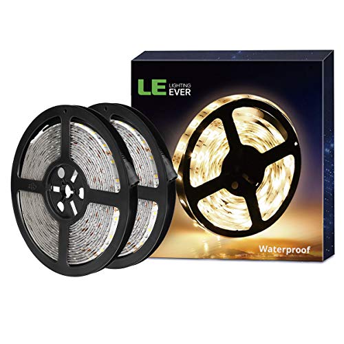 LE Striscia LED 5m, 300 LED 2835 SMD Impermeabile IP65, Luce Bianca Calda 3000K, 12V DC, Nastro Luminoso Flessibile 18W, Ideale per Soffitto, Cucina, Decorazione Interna, Confezione da 2 Pezzi