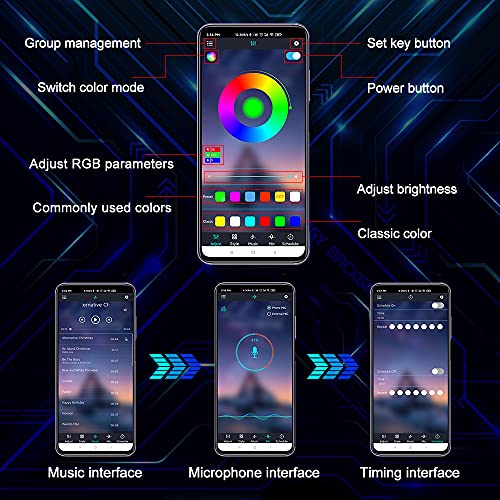 Striscia LED Auto con APP, 48 LED Luci per interni auto Musica Attivato da suono Multi-color atmosfera Light Bar Musica Attivata dal Microfono + Vari Colori + Controllo APP per decorare Auto