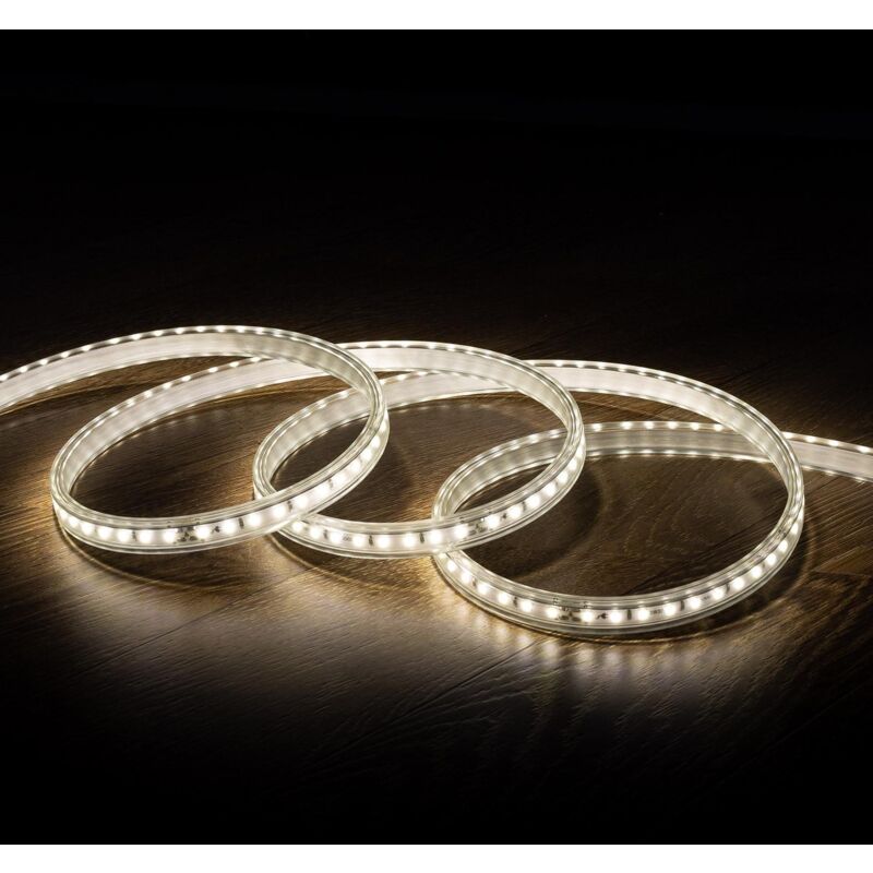 La Striscia LED 220V AC 100 LED/m Bianco Naturale IP67 su Misura Larghezza 14mm Taglio ogni 25cm non richiede alcun tipo di alimentatore dato che si connette direttamente alla rete elettrica per mezzo di un cavo raddrizzatore. La sua flessibilità permette che si adatti a quasi qualunque superficie. Caratteristiche della Striscia LED 220V AC 100 LED/m Bianco Naturale IP67 su Misura Larghezza 14mm Taglio ogni 25cm I 100 LED/m SMD 2835 integrati nella striscia LED consumano solo 7W al metro. Fabbricata con materiali di prima qualità, è dotata della massima protezione contro agenti esterni solidi e liquidi che si riassume nel suo indice di protezione IP67 e che la rende adatta all'uso in ambienti interni ed esterni. La Striscia LED 220V AC 100 LED/m Bianco Naturale IP67 su Misura Larghezza 14mm Taglio ogni 25cm include un cavo raddrizzatore e un tappo terminale, componenti che si consiglia di proteggere in maniera adeguata con del silicone affinché il grado di protezione IP67 non venga