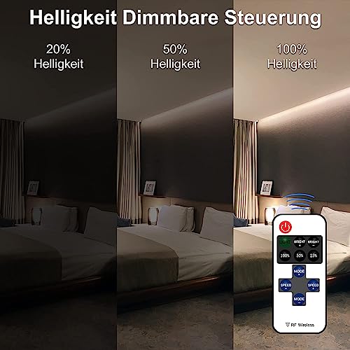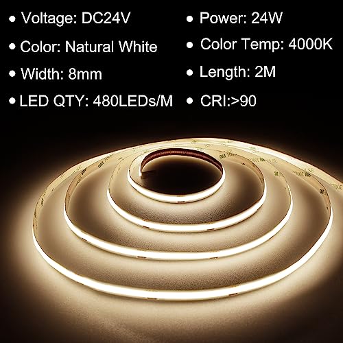 Striscia LED COB 2 Metri, 4000K con Alimentatore e Telecomando, DC24V, 480LEDs/M, CRI 90+, larghezza 8mm, Bianca Naturale per la Decorazione della Camera da Letto