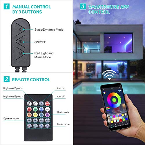 【Tecnologia Bluetooth avanzata】:Striscia LED RGB possono essere collegate a telefoni cellulari tramite Bluetooth supportano dispositivi IOS e Android e possono utilizzare applicazioni su smartphone per controllare le strisce.