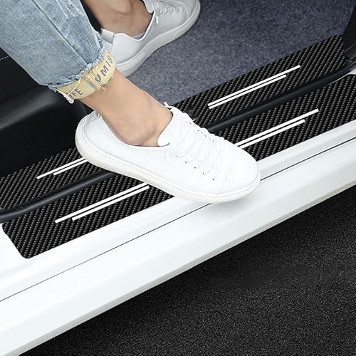 Protezione completa: la protezione del davanzale della porta può prevenire efficacemente graffi e abrasioni sul davanzale della porta originale. Facile da installare con un forte supporto adesivo. Fornire difesa per la soglia della porta da graffi, rigature, calci e macchie, evitare gli alti costi di manutenzione dell'auto