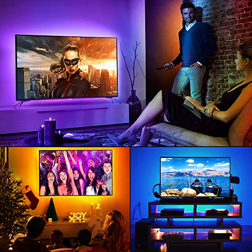 Tutti i Lati Coperti: La retroilluminazione a LED della TV è lunga 9,8 piedi. Il design 2 x 3,28 piedi + 2 x 1,64 piedi copre ogni lato dei tuoi televisori da 46-60 pollici. L'illuminazione colorata ti offre un migliore divertimento visivo. possiamo metterli su pareti, letti, armadi, TV, auto e così via.