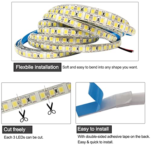 Tyun Striscia LED, 12V Strisce LED 120 LEDs/M 5 Metri 600 LEDs Bianco Caldo 3200K SMD 5054 IP65 Impermeabile Flessibile LED Strip Nastri LED per Giardino, Camera da Letto, Decorazione Della Cucina