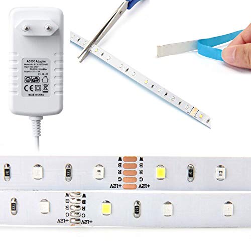 2835 SMD LED Striscia Supernight Intelligente LED Strip 12V Kit 10M (2x5M) 560 LED NON Impermeabile con Wi-Fi Controller Funziona con Alexa, Google Assistant e 12V 3A LED Alimentatore, RGB+Bianca
