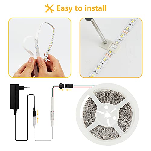 【Sicuro da Usare】: 300 LEDs SMD 2835 emettono 1200 lumen di luce bianca calda super luminosa. La bassa tensione di funzione a 12V e l'alimentatore la sicura da usare.Questa striscia luminosa è a basse emissioni di carbonio, nessuna radiazione e nessun inquinamento per l'uomo e l'ambiente. basso consumo energetico. Utilizzo sicuro per adulti e bambini