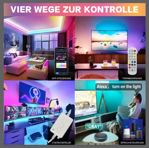 Striscia LED WiFi da 5 m, RGB+IC con telecomando, musica Sync, controllo segmento, cambia colore, controllo app, striscia luminosa con Alexa, Google Assistant LED per feste, casa fai da te