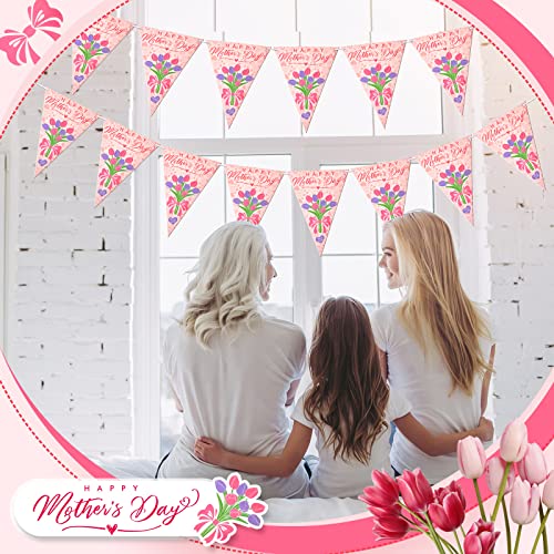 Pacchetto decorativo festa della mamma: riceverai 2 pezzi di decorazioni per la festa della mamma, ognuno dei quali è uno striscione completo composto da 12 bandiere triangolari, progettato con elementi e motivi legati alla festa della mamma, che possono facilmente soddisfare le esigenze di decorazione della tua mamma Festa del giorno